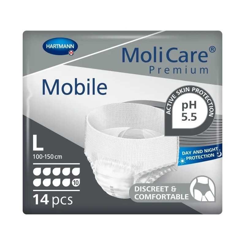 MoliCare® Premium Mobile 10 Damla külot bez, şiddetli idrar ve dışkı kaçırma yaşayan kadın ve erkekler için geliştirilmiş, yüksek emiciliğe sahip, tek kullanımlık külot tipi inkontinans ürünüdür.