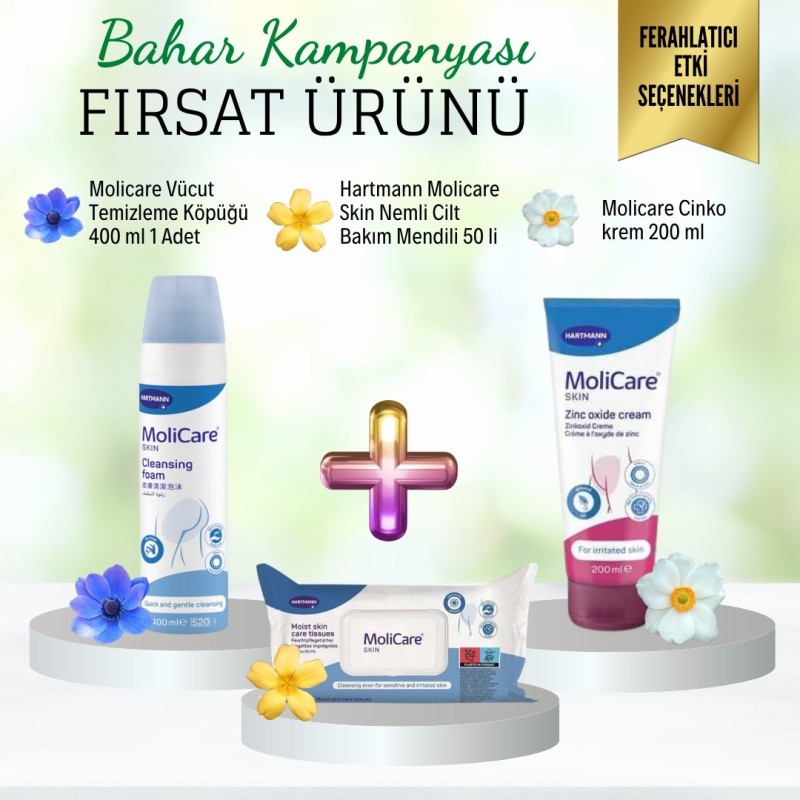 Molicare Bakım Seti – 1 Adet Çinko Krem, 1 Adet Köpük ve 1 Adet Mendil
